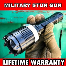 8" Military SWAT Tactical 10MV Stun Gun Rechargeable LED ZOOM Flashlight Black